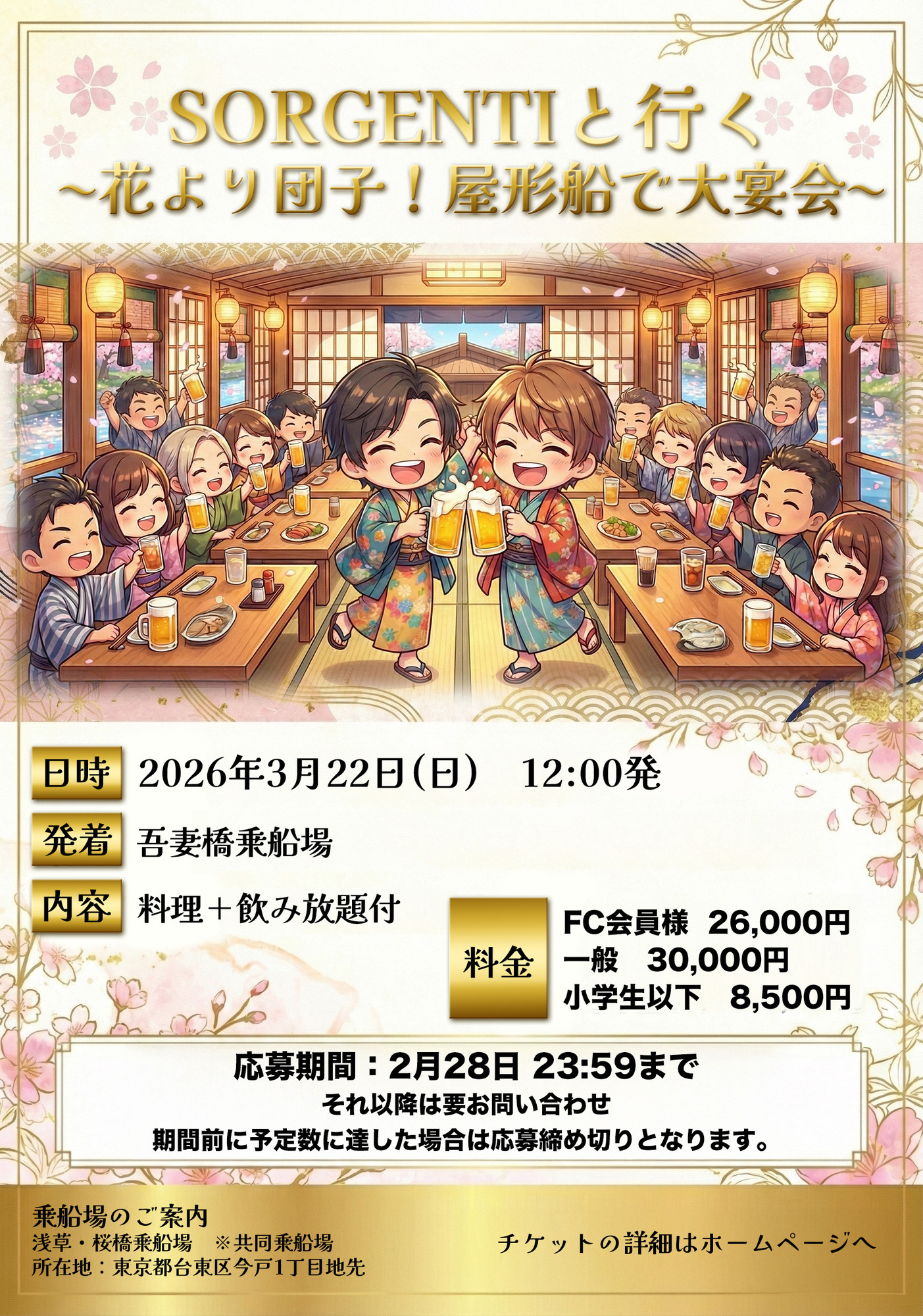 SORGENTIと一緒に特別な屋形船イベントを開催します。
